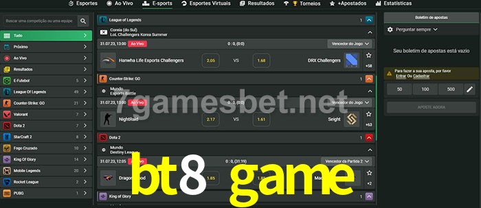 A aposta bt8 game oferece aos jogadores a experiência mais conveniente de apostas em eSports!
